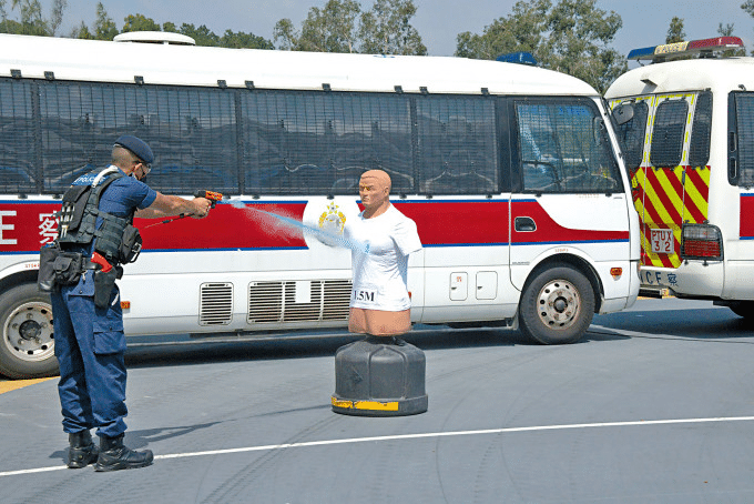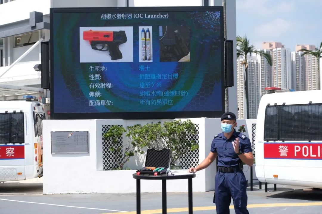 警察機動部隊訓(xùn)練學(xué)校警司袁永康表示,在2019年有許多違法及向警方?jīng)_擊的公眾活動,令很多公共設(shè)施、私人財產(chǎn)受到破壞,亦有不少警員或市民受到襲擊,甚至生命受到威脅,令警隊認(rèn)為有必要增加前線低殺傷力武器的選項。有見及此,警方在參考海外經(jīng)驗后,在去年正式確認(rèn)胡椒水發(fā)射器為低殺傷力武器,并陸續(xù)為前線同事提供訓(xùn)練。相關(guān)武器在德國、瑞士、美國,及日本均有被執(zhí)法人員使用。
