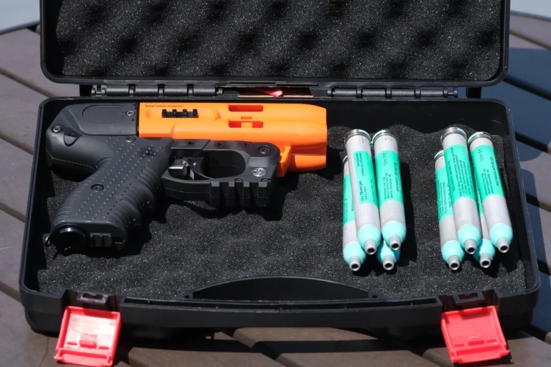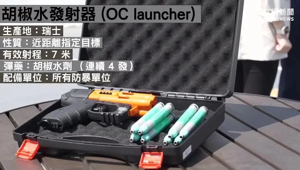 香港警方讓港島總區(qū)沖鋒隊前線人員在執(zhí)勤時配備胡椒水發(fā)射器。在2019年因修訂《逃犯條例》所引發(fā)的連場沖突后,警方有機會面對的潛在暴力場面增加,繼而開始引入低殺傷力武器。警方最新公布,在試行一款瑞士產(chǎn)的胡椒水發(fā)射器配備及使用計劃,務(wù)求提升止暴制亂的成效。該款發(fā)射器近距離擊中指定目標(biāo),有效射程達(dá)到7米,可連續(xù)發(fā)射4發(fā),以刺激及限制暴力人士的行動,相較胡椒噴劑更具針對性。