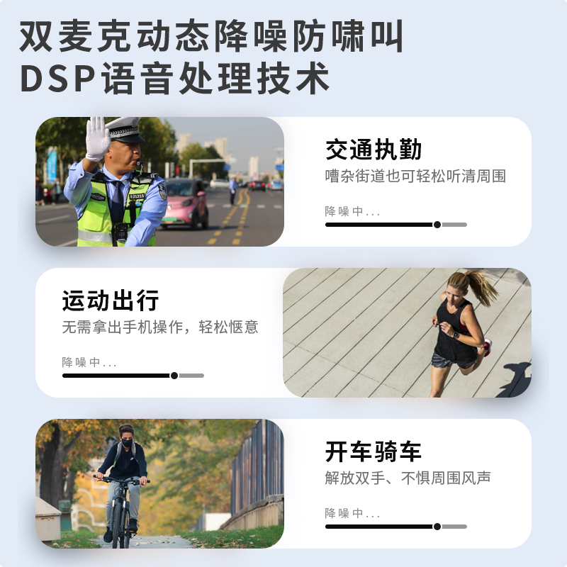 3、開放雙耳,室外也安全,因為無需堵住耳道,使用者在聽到耳機聲音的同時依然可以完整的聽到外界的聲音,這有利于出行,運動,駕車更安全,提高了警務(wù)人員在復(fù)雜環(huán)境下的安全性。