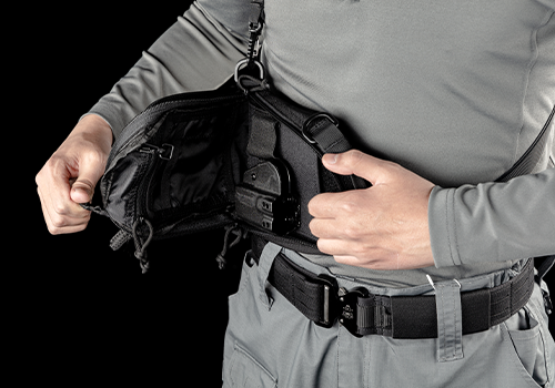 可作為斜挎包,腰包,手提包,也可以裝背心上,快速斜拉設(shè)計(jì)、隱藏槍包92/92G、黑色