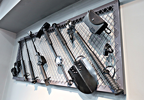 伸縮警棍主體、組合把手、專用電筒、反射鏡、防搶棍套、破玻璃器、手錘、鋼筆、鐵鏟、鐵剪、羊角錘、工具包、約束帶、割繩器