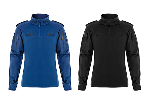 上衣針織接合梭織面料,其它部位采用梭織尼龍+棉+氨綸格子面料,肘部采用考杜拉500D尼龍面料,內(nèi)可加高彈護(hù)肘。