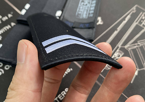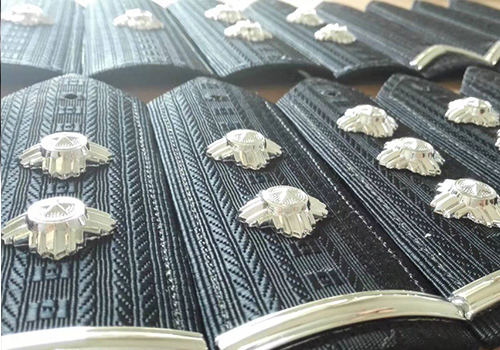 雙層牛皮縫合工藝、激光雕刻金色警徽、警禮服佩戴