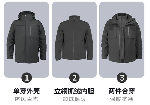 三種穿搭方式、隱藏式標識、穿著舒適、防風防潑水、穿衣指數(shù)-10℃至20℃