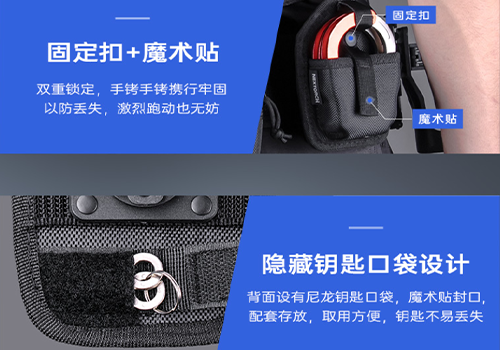 兼容金屬手銬、固定塊+魔術貼雙鎖、背面魔術貼鑰匙袋