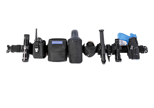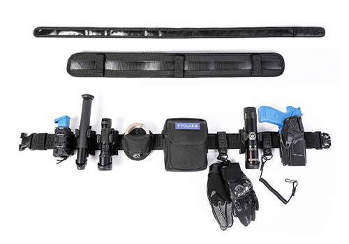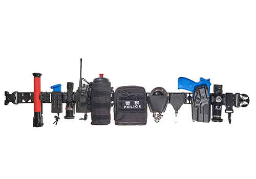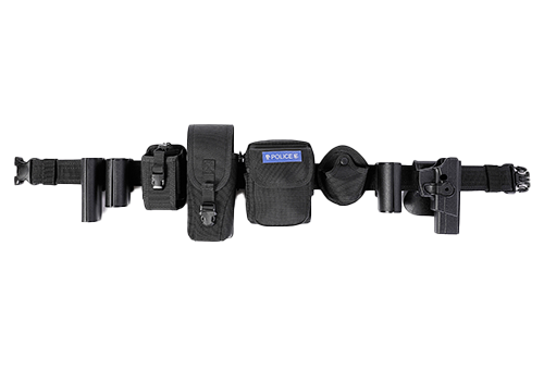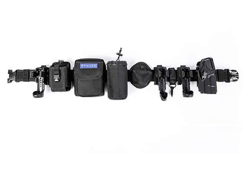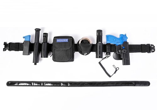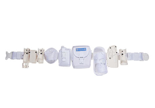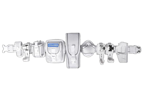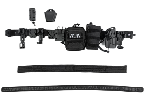 由塑料扣外腰帶、塑鋼棍套、塑鋼噴霧套、對講機套、水壺套、工作包、手銬套、塑鋼手電套、塑鋼槍套組成